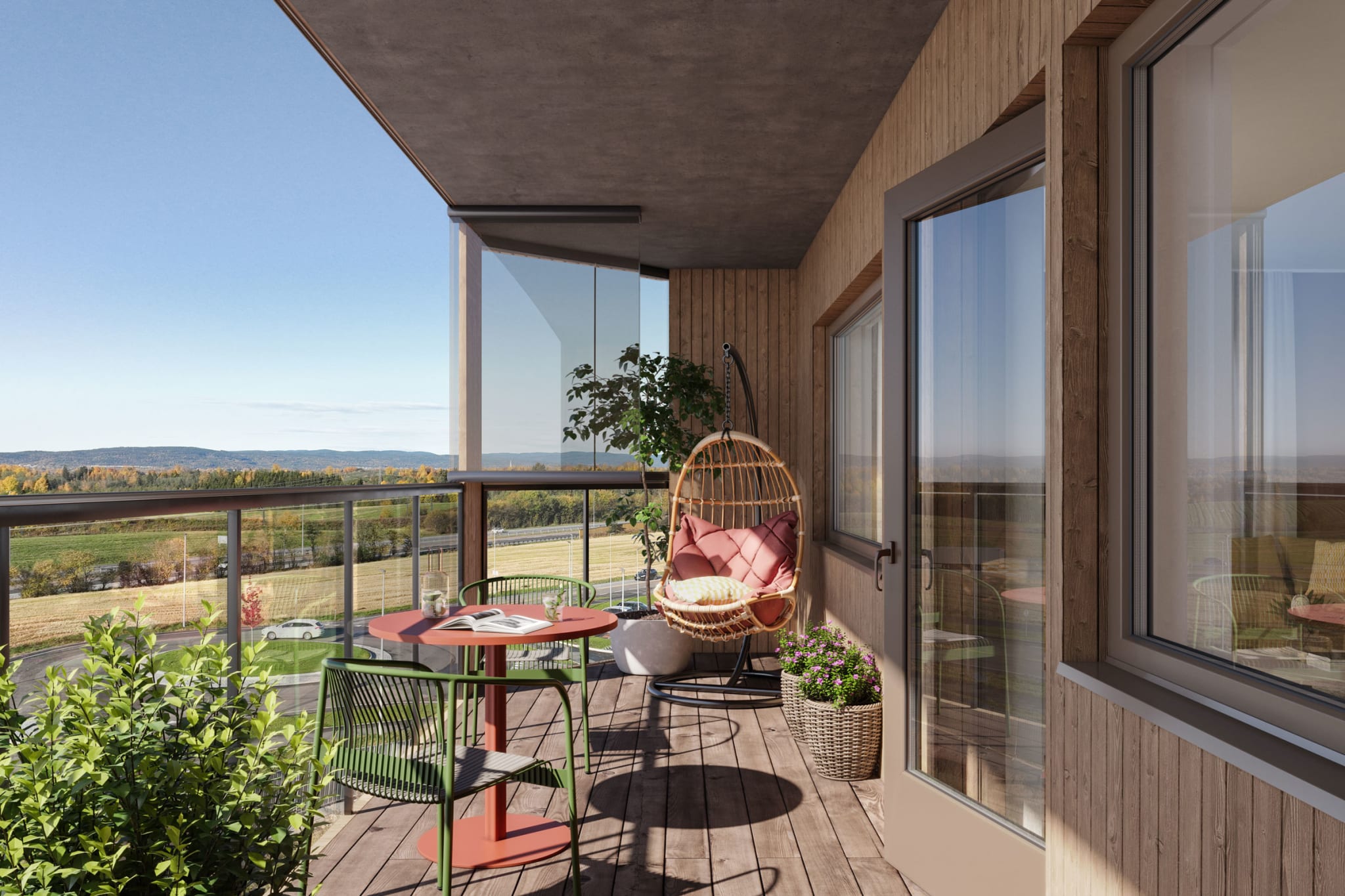 Drømmer du om en leilighet med privat uteplass? Hver bolig på Takhagen har innglasset, solrik balkong – perfekt for avslapning med morgenkaffen, hygge med venner eller en rolig lesestund. For sosialt samvær og rekreasjon kan beboerne også nyte godt av en stor, felles takhage. Her kan du la barna leke trygt mens du nyter en stund i solen med vakker utsikt. Takhagen legger til rette for et levende naboskap og gir deg en uforstyrret, grønn oase – tett på bylivet.